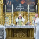 El pasado jueves 8 de Junio, en el Real Colegio Seminario de Corpus Christi de Valencia, Iglesia del Patriarca, se celebró la “Misa Solemne del Corpus”, oficiada por el Emmo. y Rvdmo. Sr. D. Enrique Benavent Vidal, Arzobispo de Valencia, acompañada por el Orfeón Catedralicio de Valencia, dirigido por D. Luis Garrido Giménez.